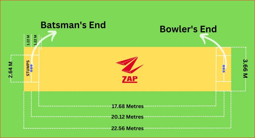 • लांबी: खेळपट्टीची लांबी २२ यार्ड (२०.१२ मीटर) असते.